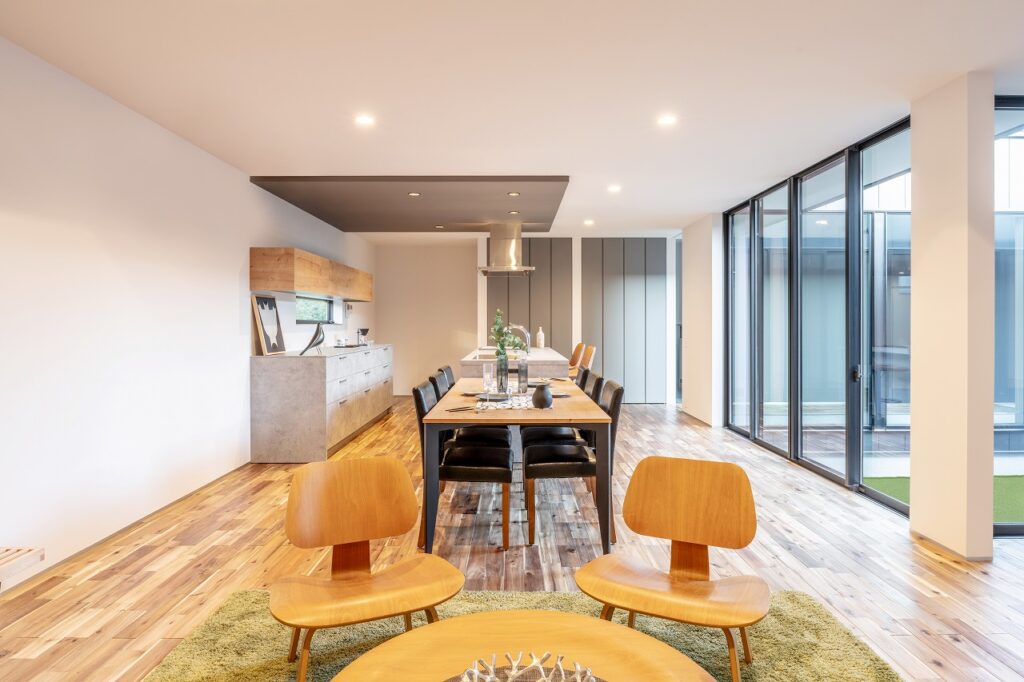 全室が、ガラス張りの中庭に面するような住宅をご提案。