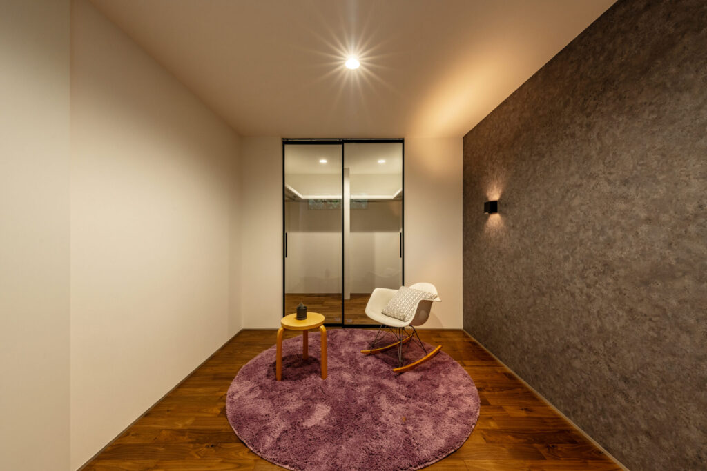寝室のWICには、お気に入りの洋服を美しく見せるガラス戸を採用。