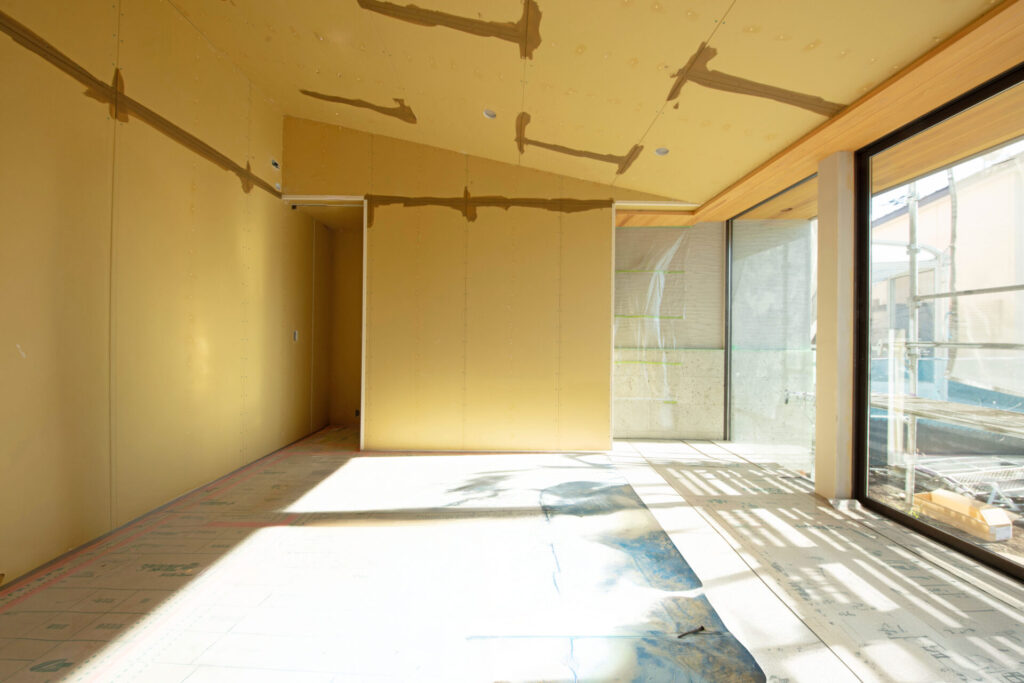 先日上棟を終えました「斜流の家」の木工事が完了いたしました。