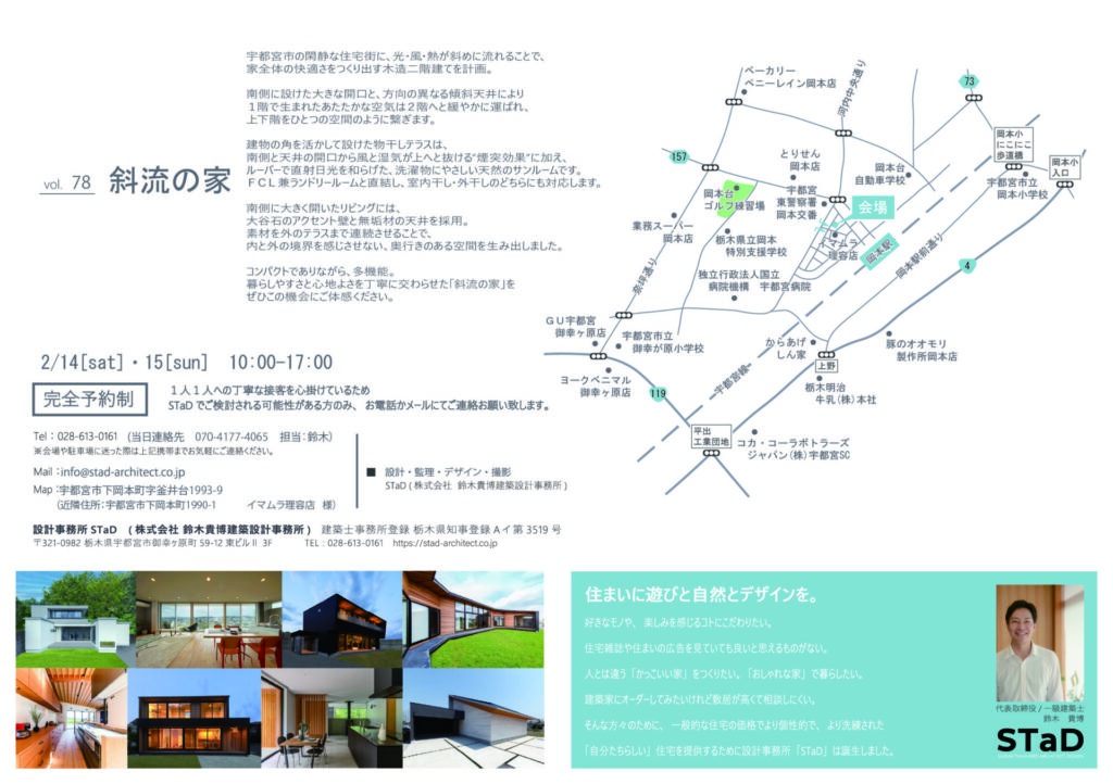 お電話もしくは下記「オープンハウス来場予約」のメールフォームにてお問合せください。