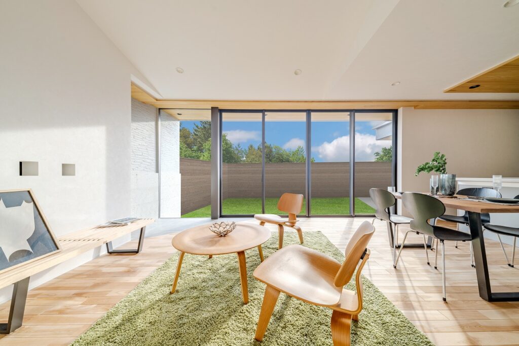 光や風、そして空気がゆるやかに流れるように設計された空間が特徴の「斜流の家」。