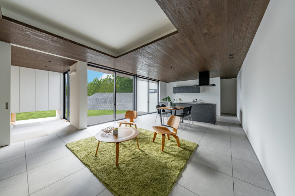 ダイニングからリビングへ、そして外へ視線がつながることで、空間に奥行きと広がりが生まれます。